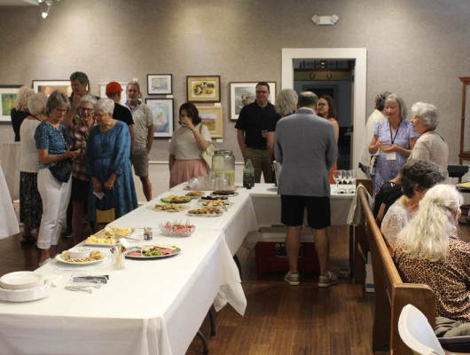 Our member meeting, art dropoff, art hanging, and setup for the Annual Show was held Thursday, August 7 st at The Barn Cultural Arts Center. Plans were discussed for the upcoming opening reception and ambassador duties during the show.
