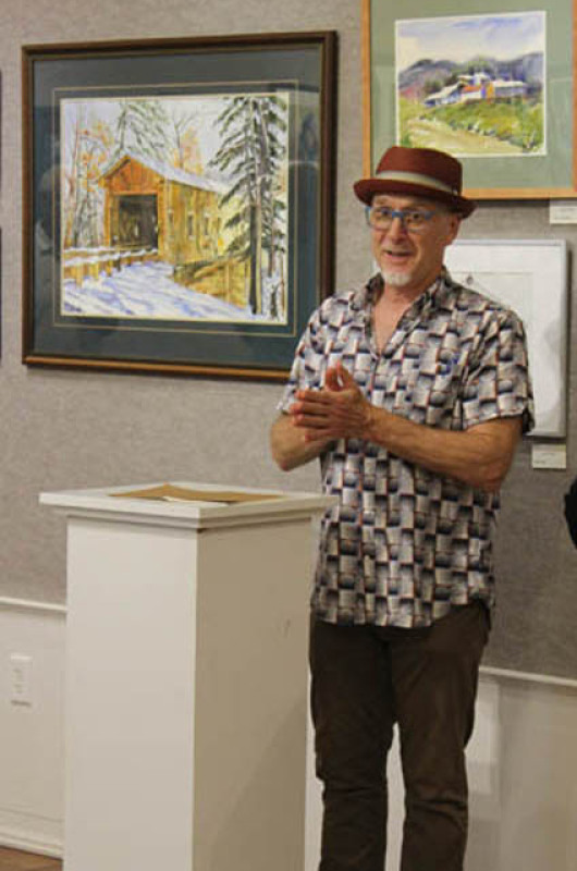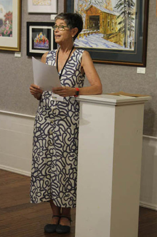 The opening for the show was held Sunday, August 10. Adele DiMinno, co-leader of the Annual Show, gave a meaningful tribute to Jim Warner, our past-president, and noted that the second place award this year is given in his memory. The show Judge was Paul Kroner, Visual Artist and gallerist at Studio Kroner on Court Street in downtown Cincinnati. As he presented the awards, he commented on each award winner, noting the qualities that earned the award.