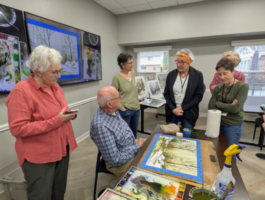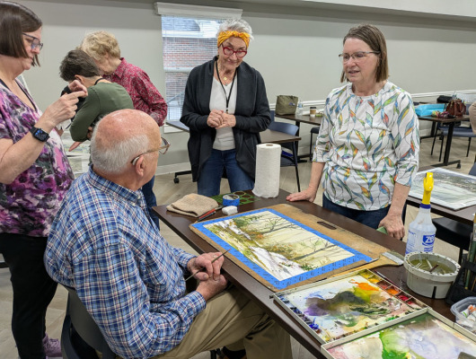 After a short business meeting, members were treated to a live art demonstration by watercolorist, Ed Kitchen!